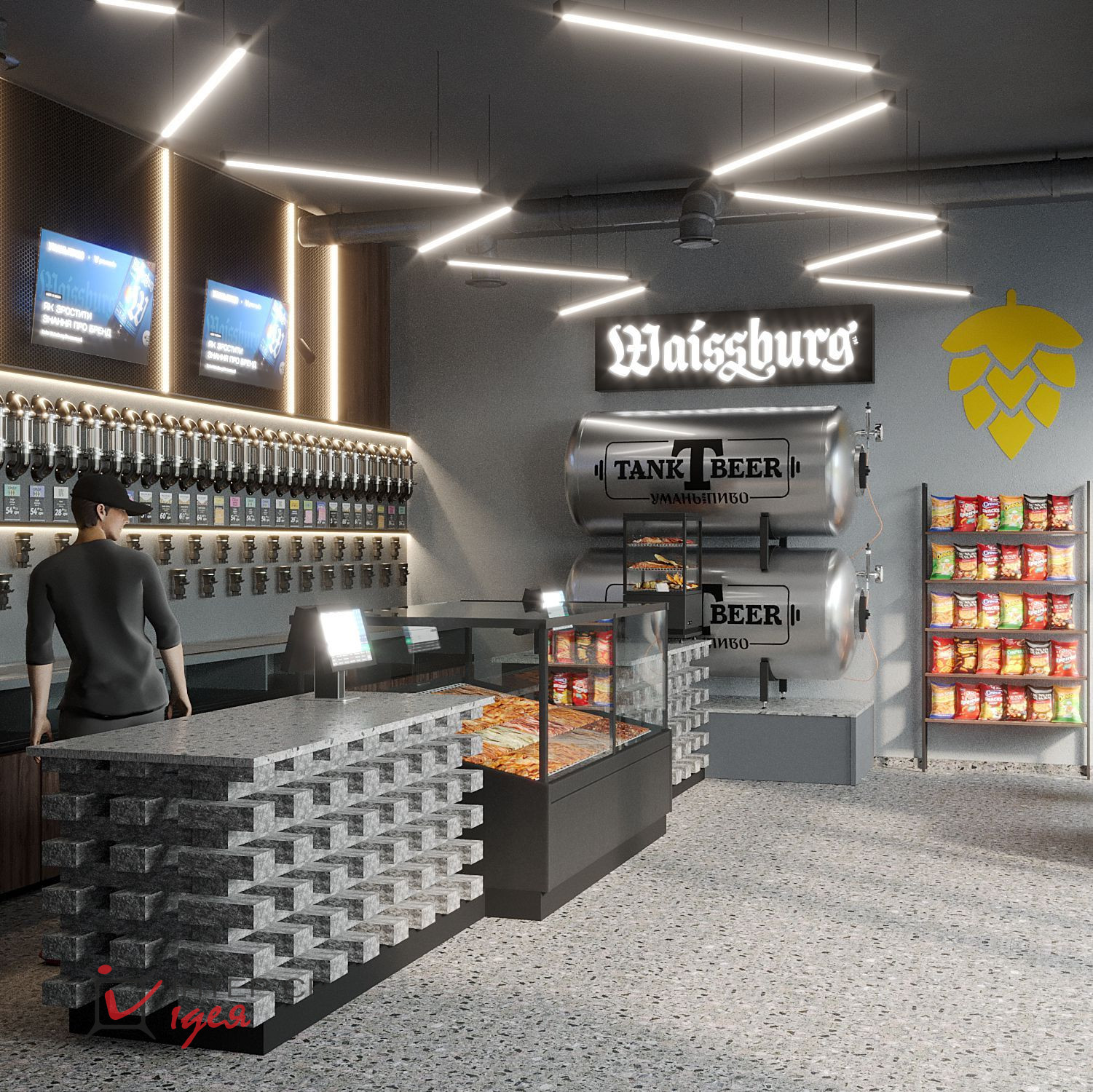 Інтер'єр магазину "Уманьпиво" в м. Біла Церква по вул. Леваневського, 57