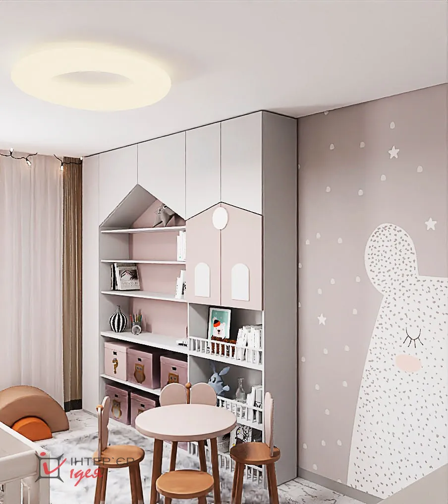 Починалась розробка дитячої кімнати, коли вже були проведені ремонтні роботи, і замовники не планували змінювати плитку на підлозі. Також ми мали пристосовуватись під готові електричні виводи, коли робилось планування.