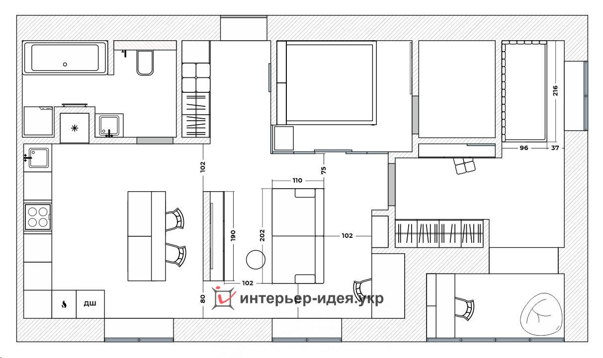 У квартирі максимальна кількість природного освітлення, для затемнення вікон використовуються лише жалюзі та ролети.
