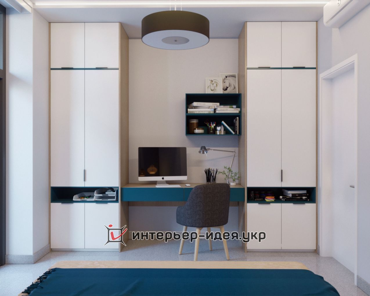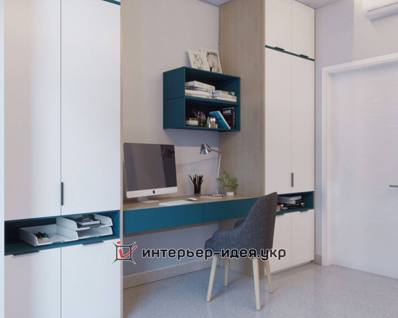 Невелика кімната поєднує в собі кабінет і гостьову, все необхідне і нічого зайвого!