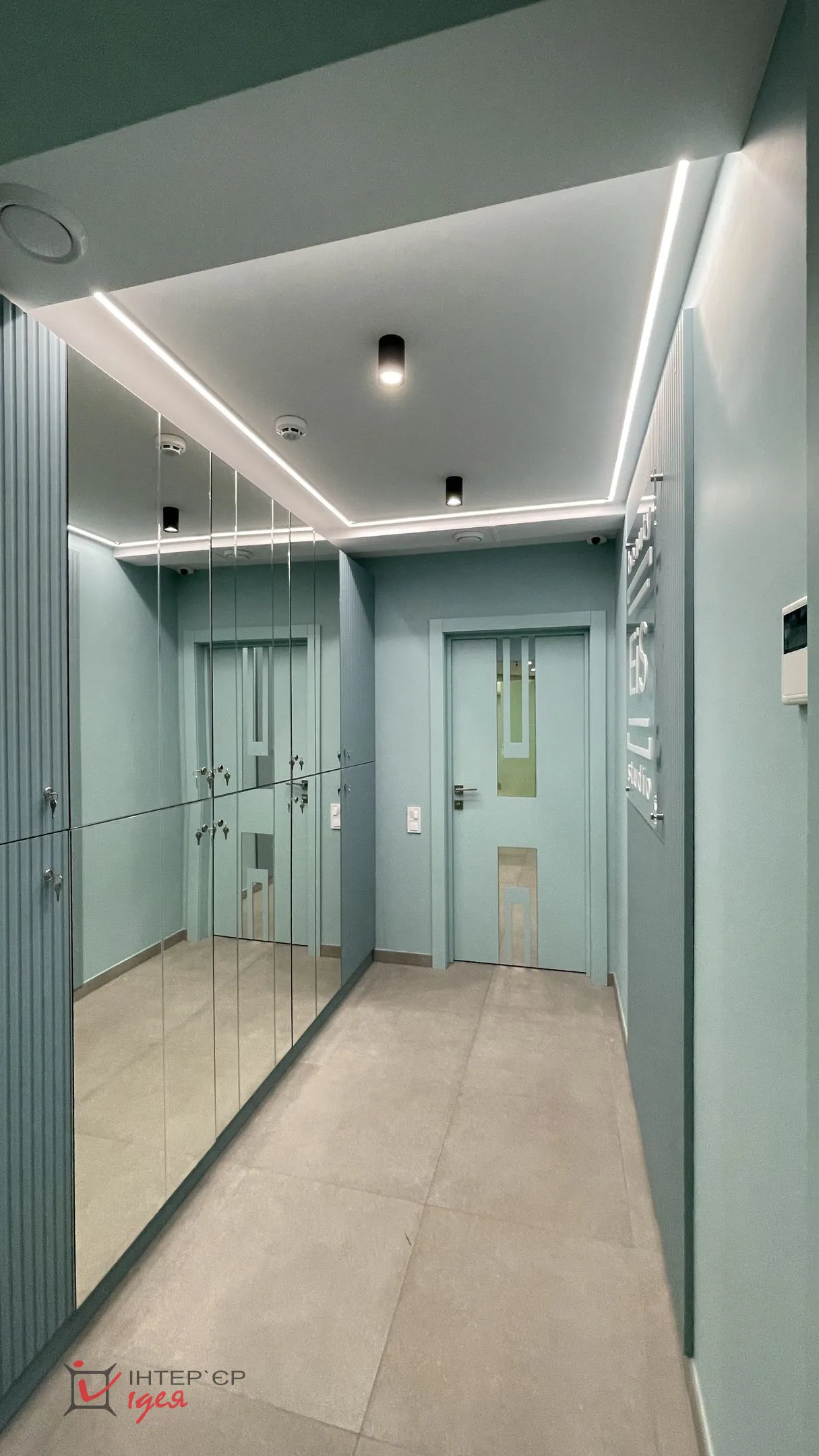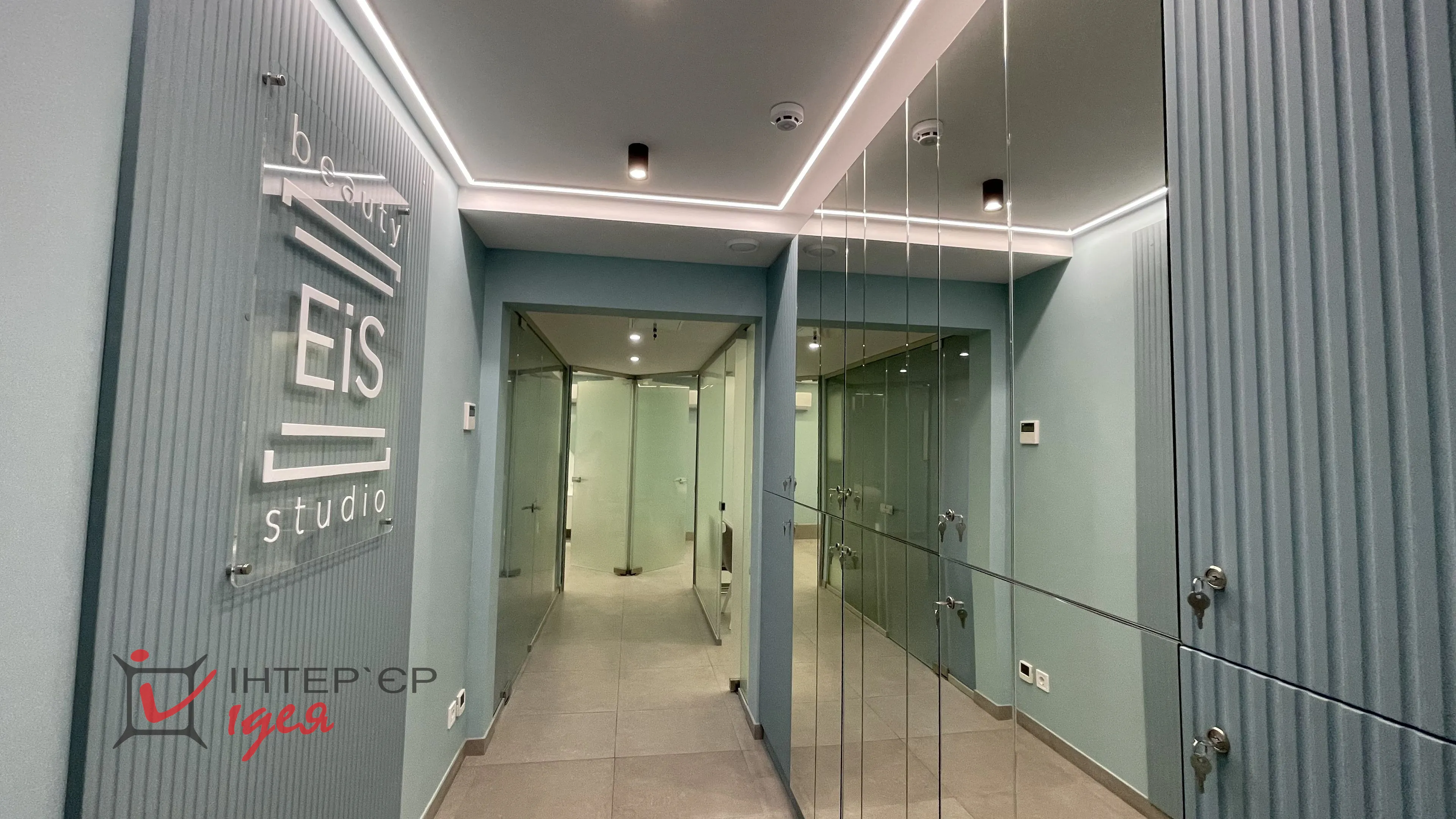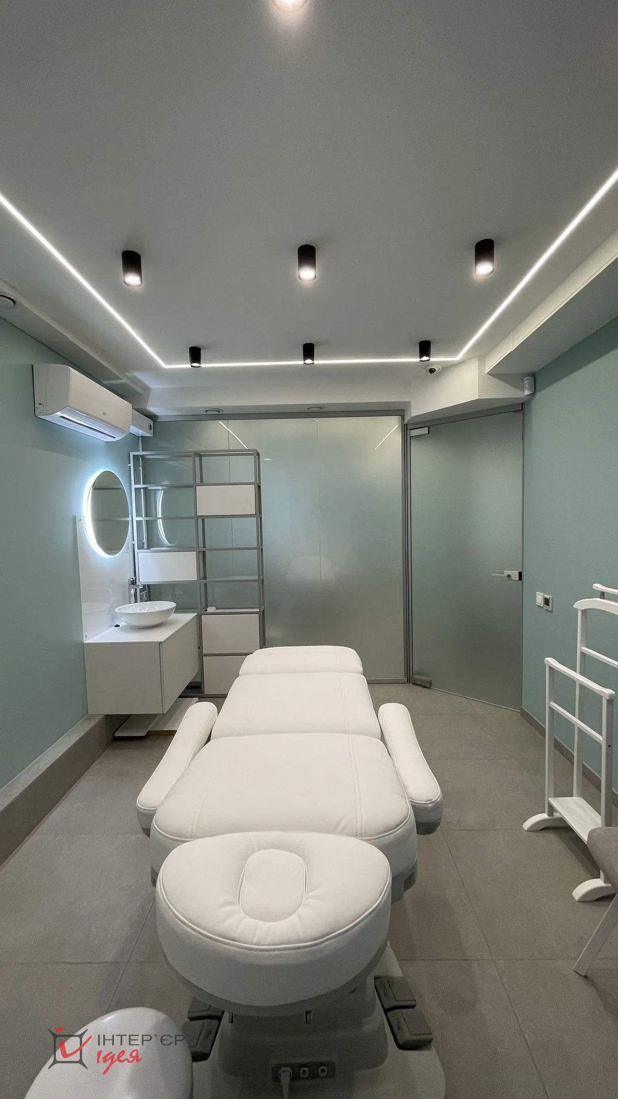 У дизайні використані скляні перегородки та дзеркала для візуального розширення приміщень, сучасні матеріали для легкого догляду, а LED-освітлення з різними сценаріями створює комфортну та затишну атмосферу. Простір раціонально зоновано: окремі кабінети для процедур забезпечують приватність і зручність для клієнтів та персоналу. Результат — світлий, стильний і сучасний салон краси, де комфорт та естетика поєднуються ідеально.