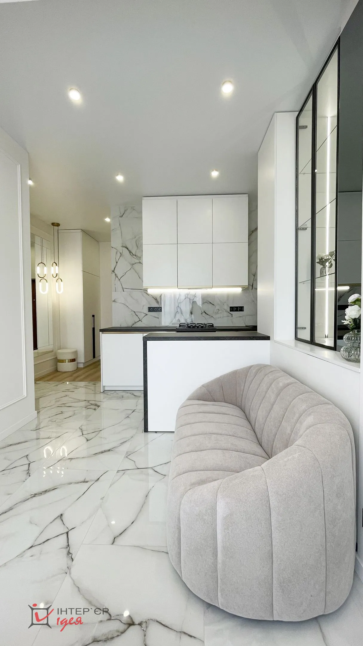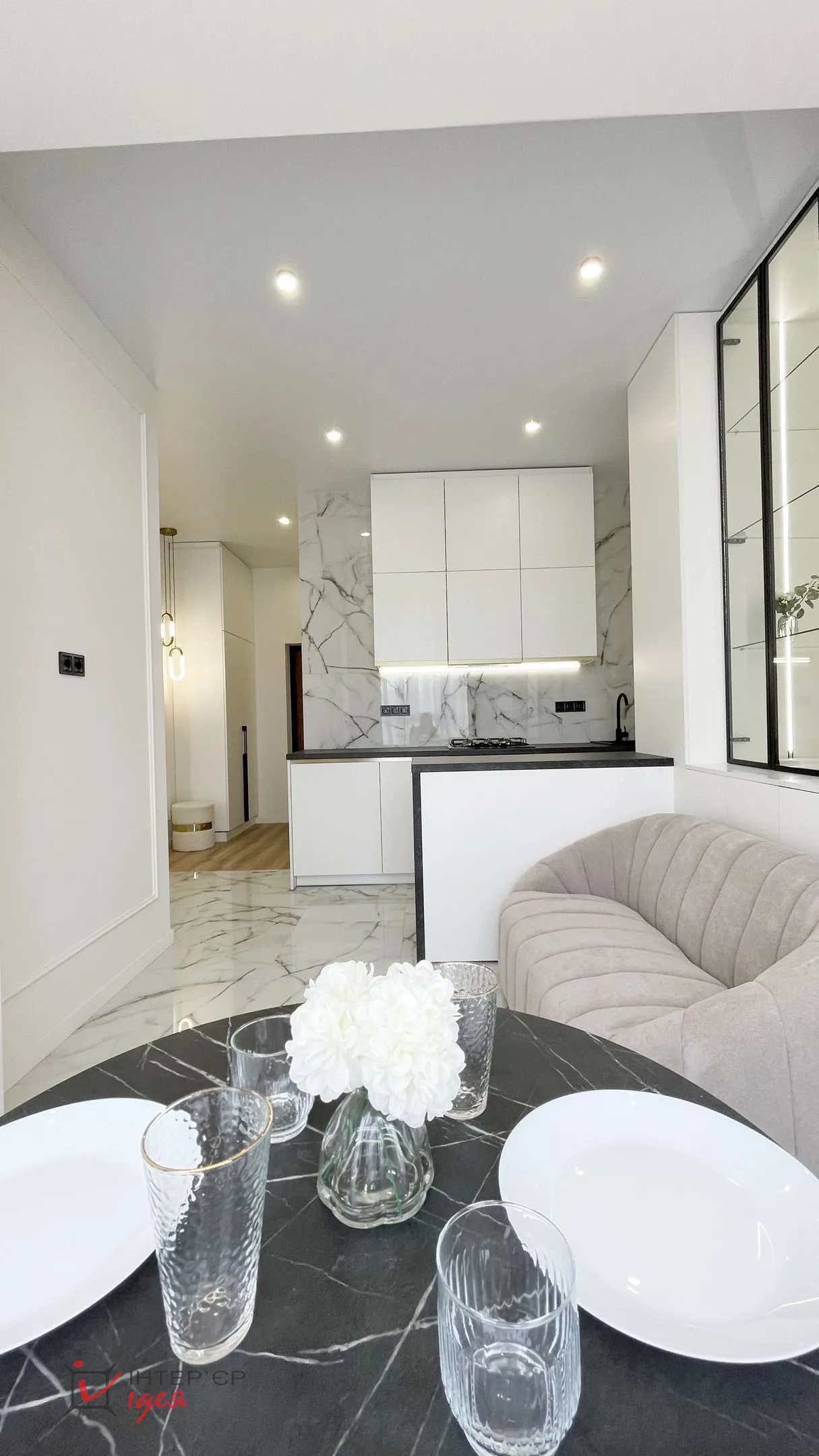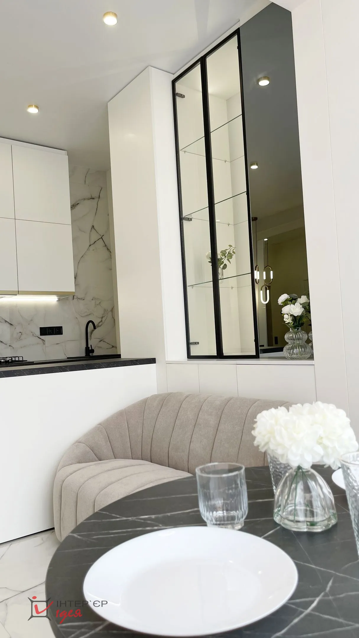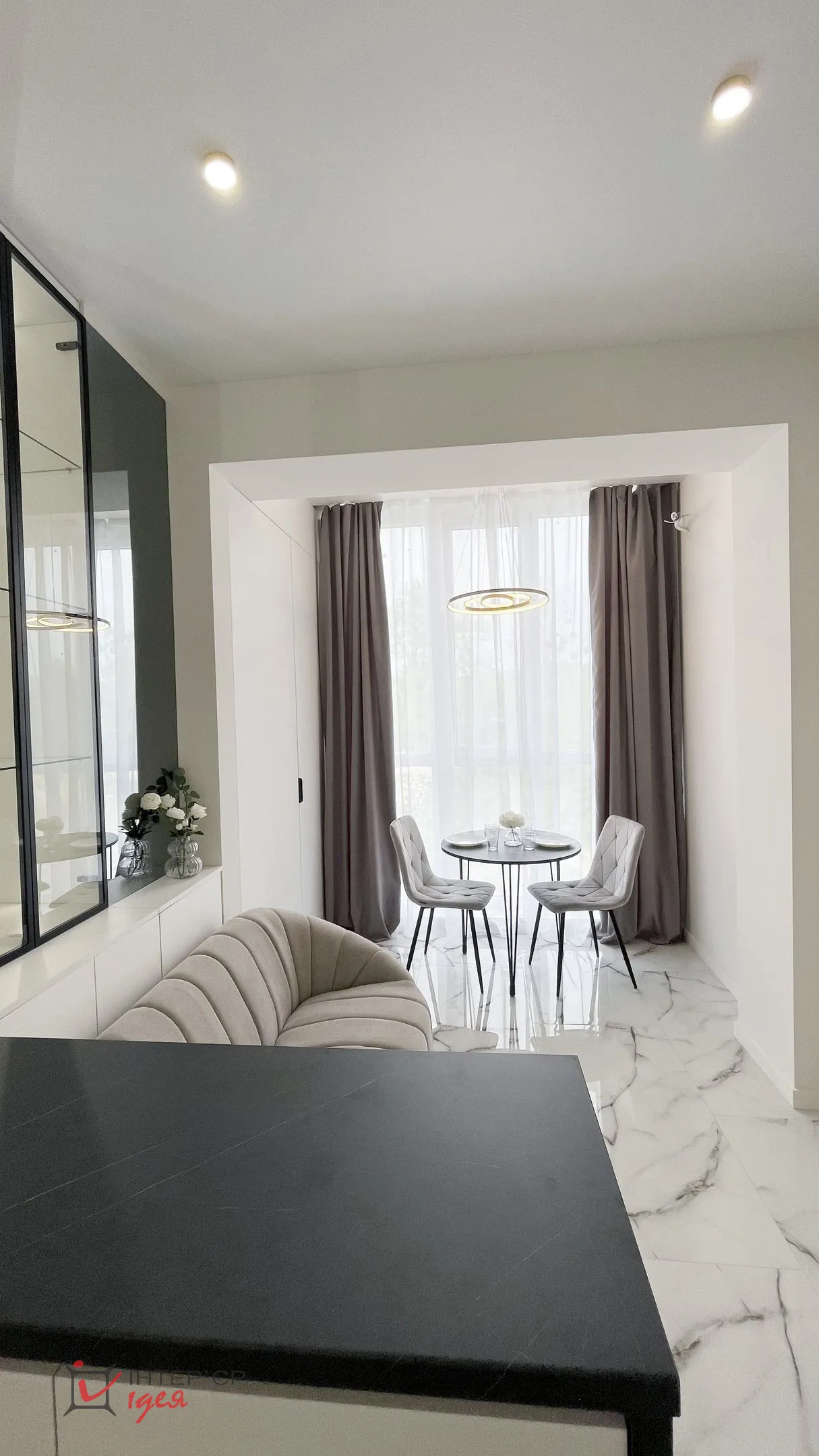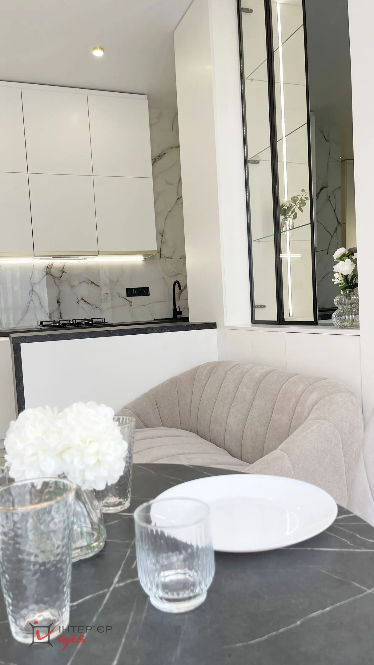 Квартира розташована на березі озера, і завдяки великим вікнам у ній завжди багато природного світла та красивий краєвид. Цей проєкт — приклад того, як навіть у компактному просторі можна створити відчуття гармонії, стилю та комфорту.